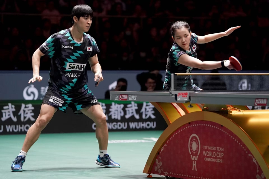 第一盘,混双林诗栋/蒯曼3比0横扫朴康贤/金娜英,尽管是第一次与韩国左手将朴康贤交手,“动漫”组合惩处更为风雅、起初也更为坚忍。“对面的男男选手不太熟悉,他的正手质地、发球很有特色。”林诗栋暗示,“咱们开局作念得可以,第二局要道球时相通也卓著多,况且起初比拟坚忍。”蒯曼也详情了我方和搭档的进展:“咱们在前三板上作念得比拟好、比拟细。”